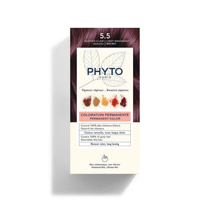 Phytocolor Permanent Color Shade 5.5 Light Mahogany Brown Garante uma cor que durará muito mais tempo.