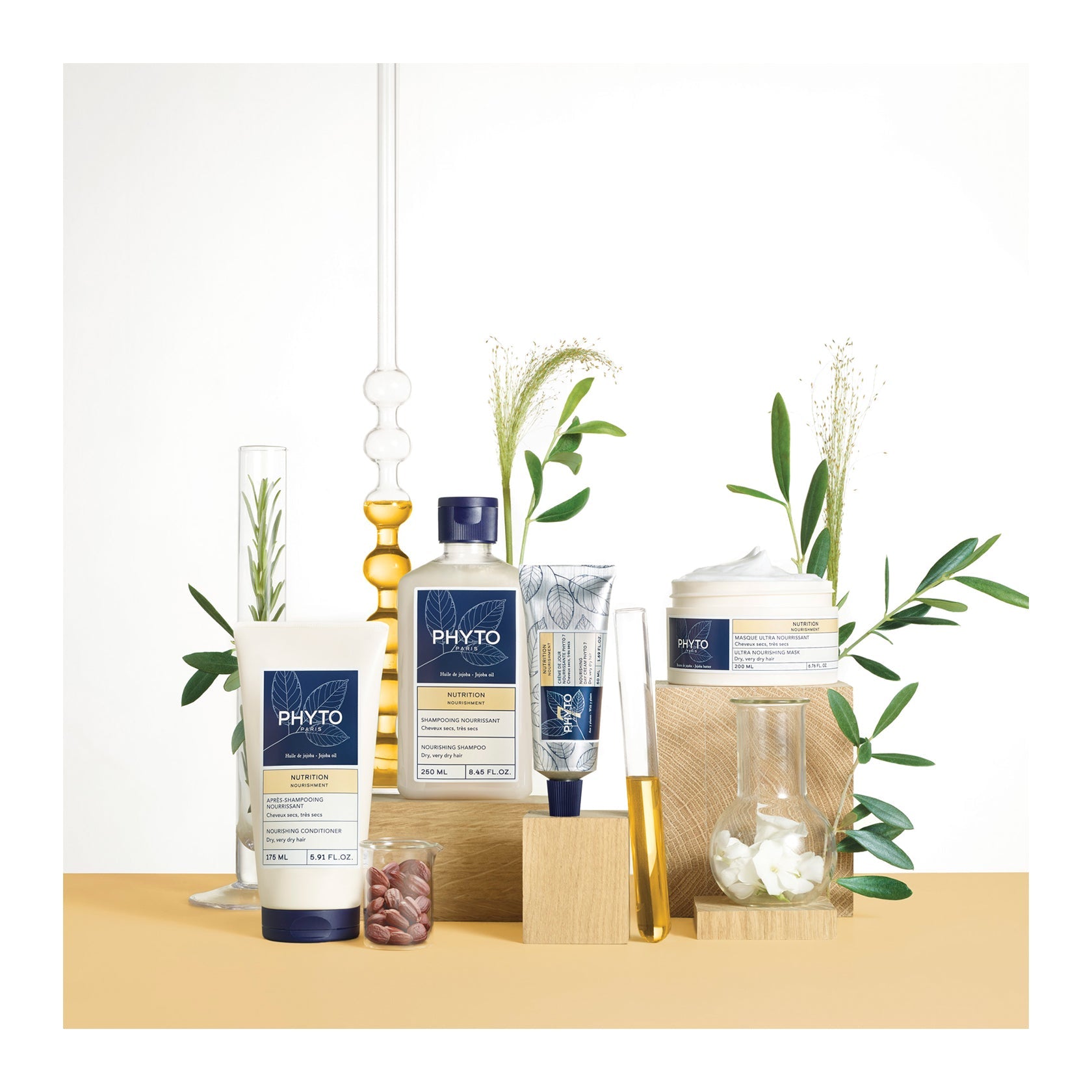 - O óleo de jojoba é rico em ácidos graxos nutritivos e cria uma camada protetora que evita o ressecamento da fibra capilar;