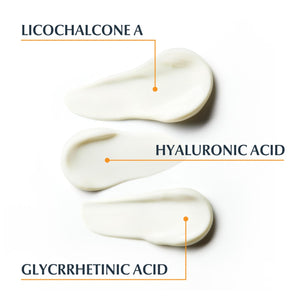 - Licochalcone A, um poderoso ingrediente antioxidante e antiinflamatório derivado da raiz da planta chinesa de Liquorice, reduz a vermelhidão e ajuda a acalmar a pele irritada;