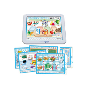Aprende facilmente Inglês com o Educa Touch. CONTEÚDO: 1 base Educa Touch Junior. 6 lâminas de atividades (o alfabeto, os números, os animais, as cores, as 4 estações, objetos da casa, da escola e outros). Instruções: APRENDEM: O vocabulário básico em inglês e as frases mais comuns. IDIOMAS PACKAGING: ES/PORT/FR/ING