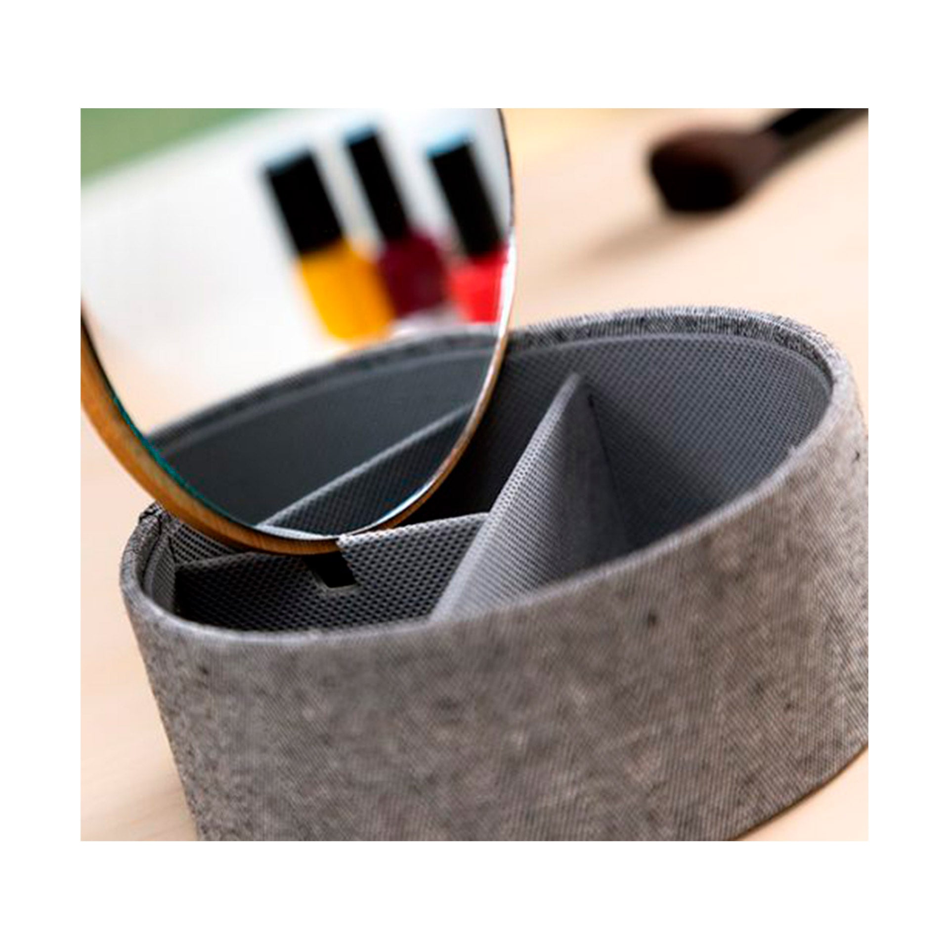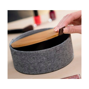 Ideal para dar um toque original e natural à decoração do quarto ou da casa de banho e perfeita para organizar e guardar jóias, cosméticos e outros objetos. Material: Bambu, Poliéster e vidro. Design inovador e funcional. Estilo exclusivo e elegante. Grande qualidade, resistência e durabilidade. Tipo: Circular; 3 Compartimentos. Tampa com espelho no verso e tira de abertura fácil. Ranhura de fixação no interior para o espelho. Medidas aprox.: 15,5 x 6 x 15,5 cm. Embalagem em 24 idiomas (inglês, francês, espanhol, alemão, italiano, português, holandês, polaco, húngaro, romeno, dinamarquês, sueco, finlandês, lituano, norueguês, esloveno, grego, checo, búlgaro, croata, eslovaco, estónio, russo, letão).