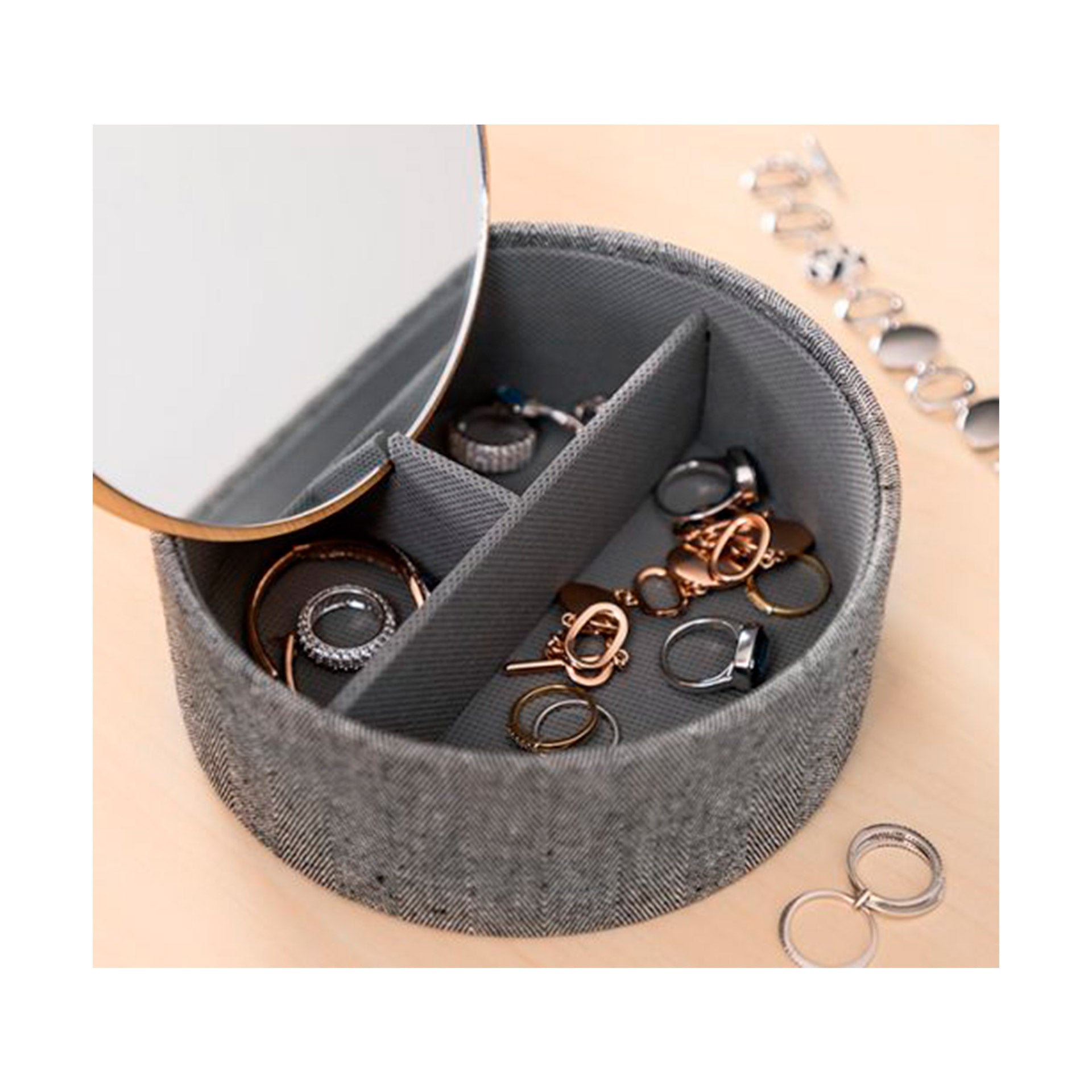 Guarda-Jóias com Tampa Bambú e Espelho