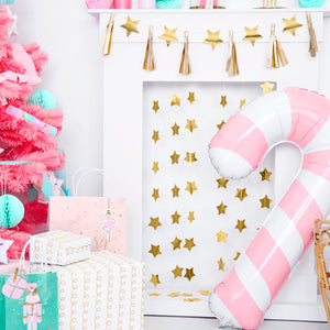 Um balão de alumínio no contorno de uma larga cana de açúcar na cor branca e rosa vai criar um visual sensacional de um salão de festas.