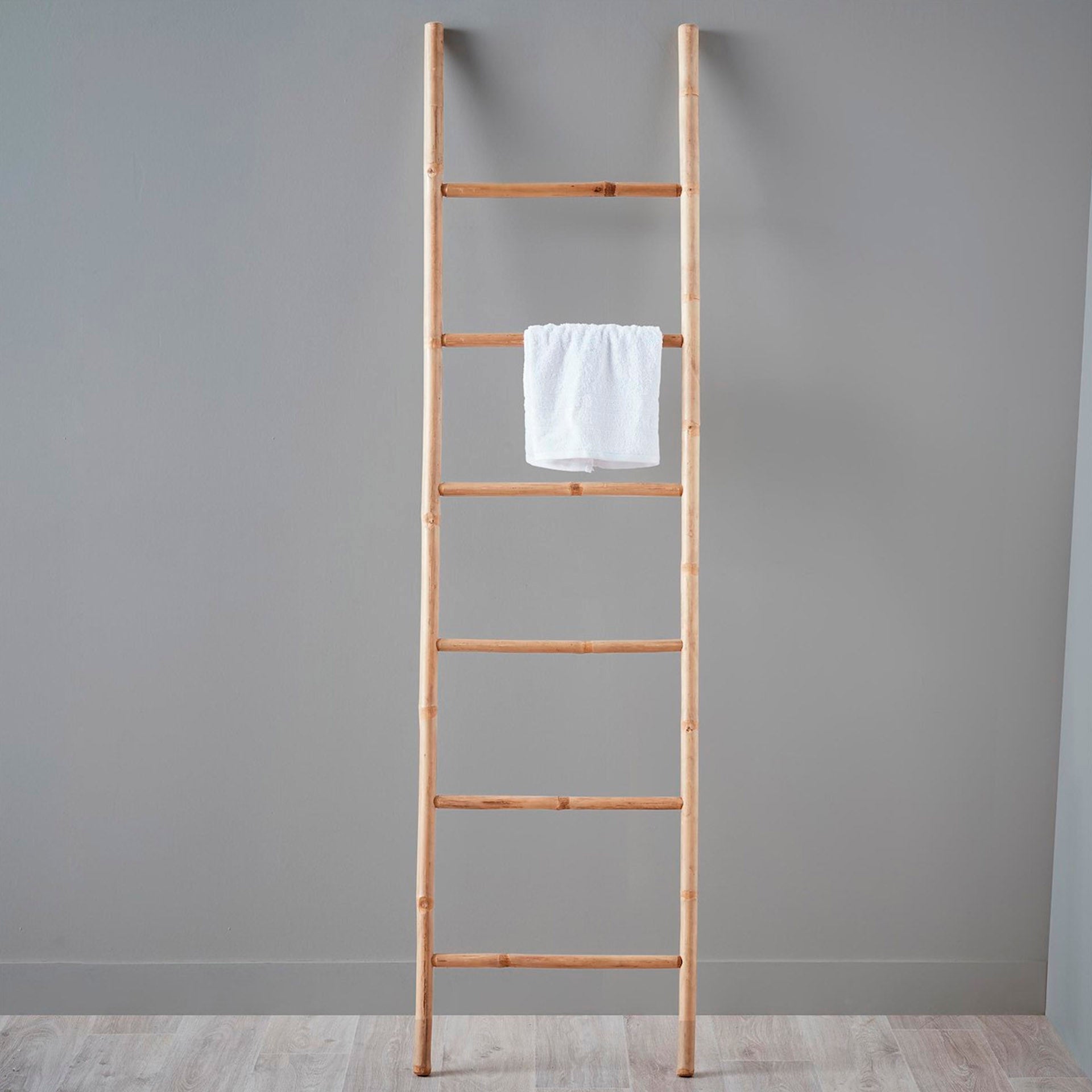 Esta escada para toalhas de bambu possui design único para ser usado como toalheiro na casa de banho ou na decoração da sua casa. Também é firme o bastante para ser usada nas tarefas em geral do lar.