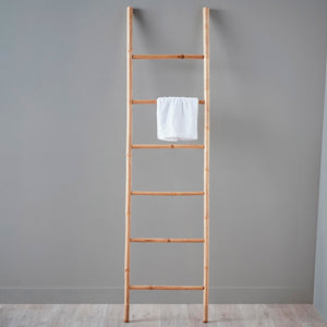 A escada é independente e autónoma, então você pode simplesmente apoiá-la na parede e pendurar toalhas usadas ou novas nos degraus para acesso fácil ou para secar. Feita de bambu de alta qualidade, a escada para toalhas é firme e altamente durável para anos de uso.