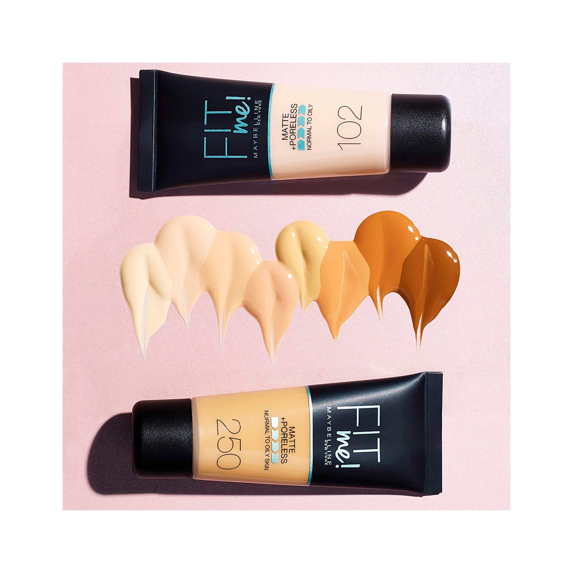 FIT ME MATTE + PORELESS da Maybelline , uma base fluida que matifica e refina os poros para uma pele de porcelana.