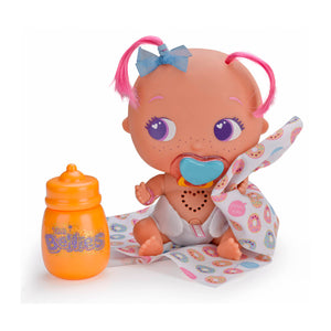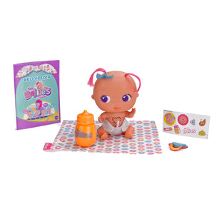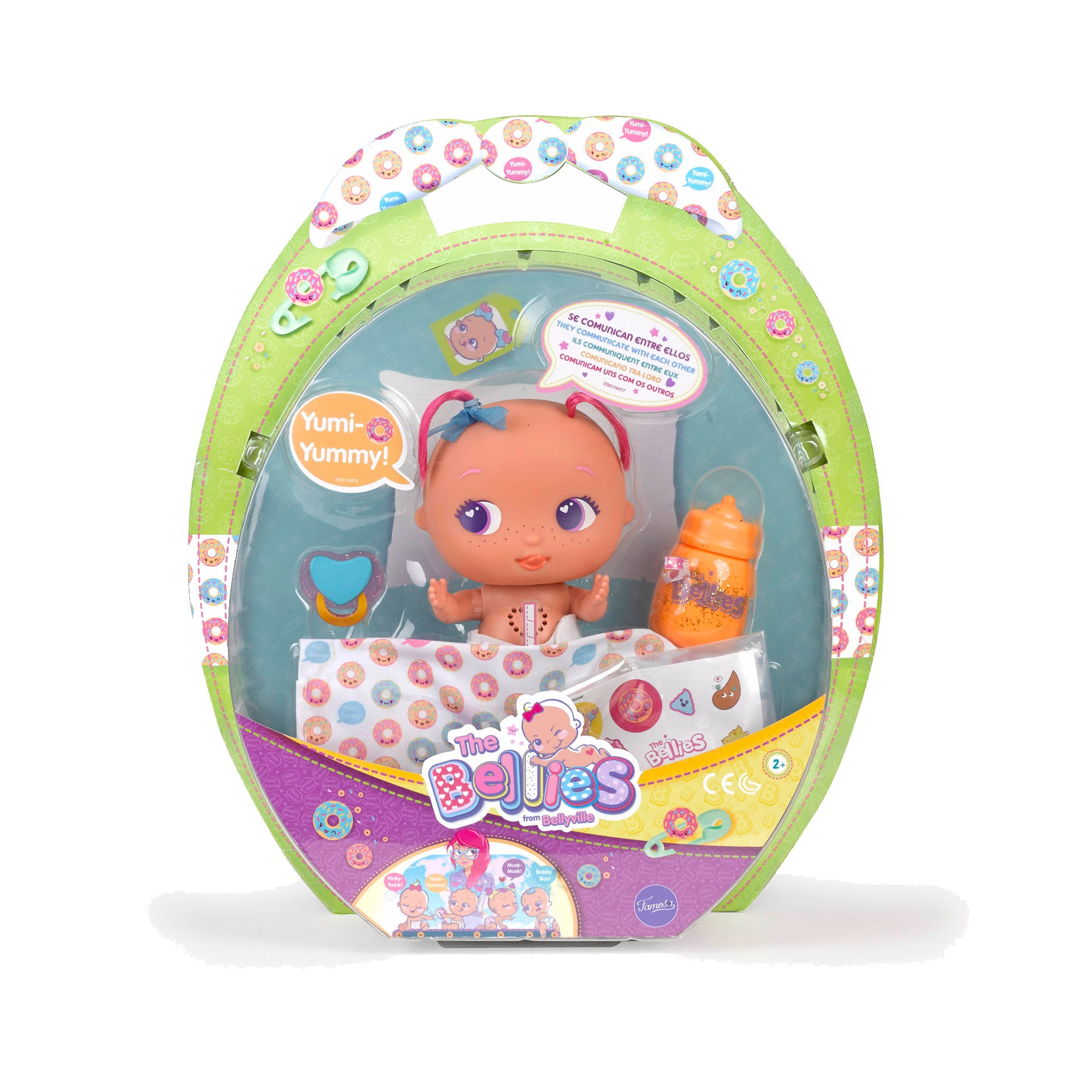 Yumi Yummy é muito doce e adora comer! A sua travessura favorita é assaltar o frigorífico e a sua cor de eleição é o laranja. Cada bellie traz incluído o seu próprio biberão, chupeta e a sua mantinha personalizada.