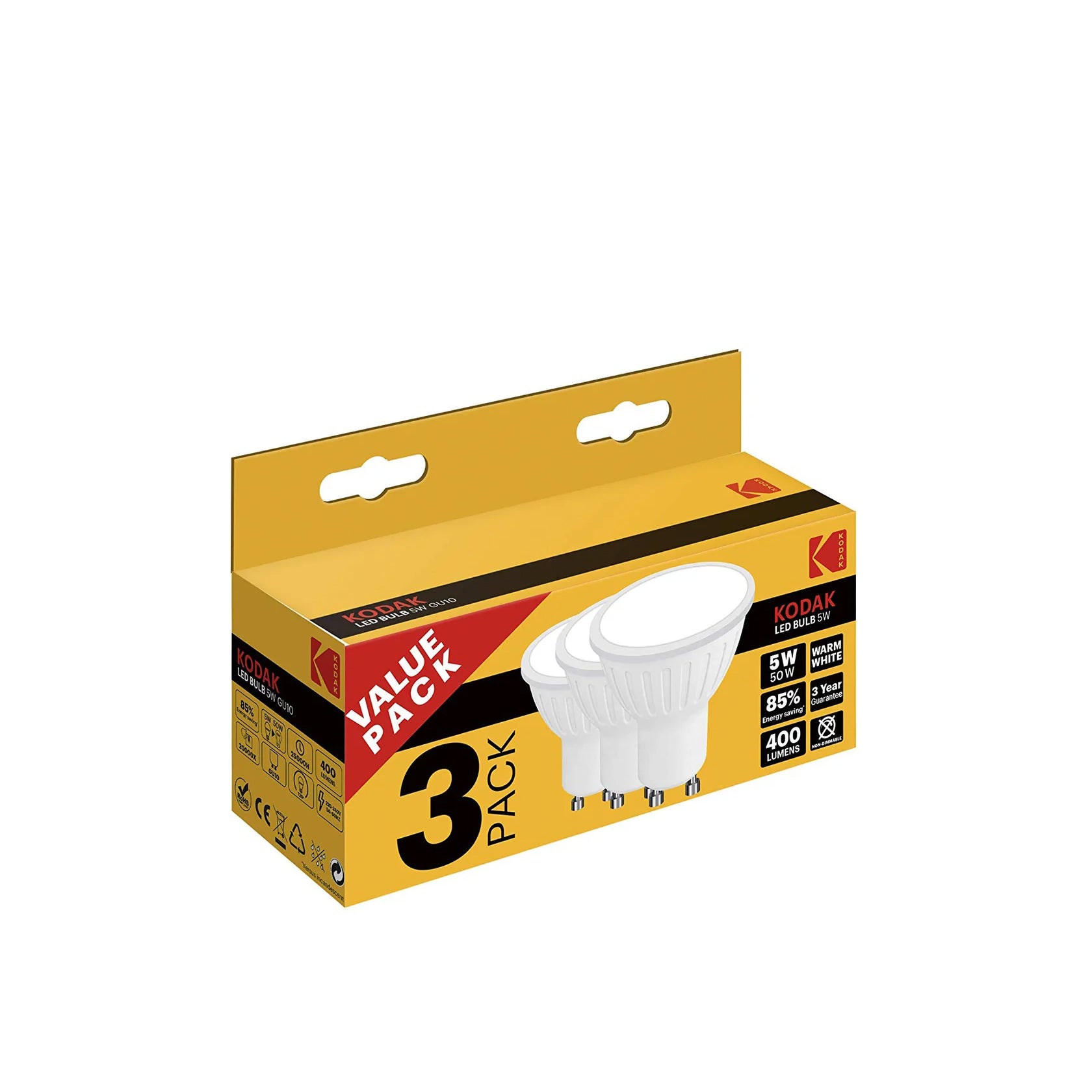 Kodak Pack Bombillas Led GU10 Blanco Cálido 5W 3 unidades