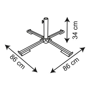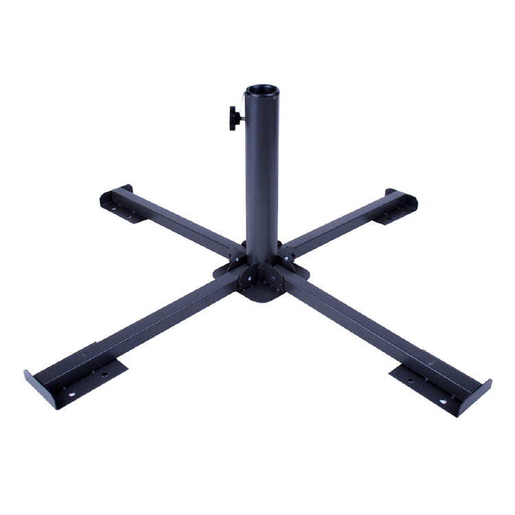 Base em cruz para o guarda-sol, fabricada em aço resistente, medidas 86x86x34 cm, preto
