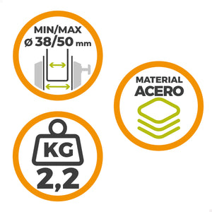 Tubo de aço com rosca ajustável (entre 35 mm e 38 mm de grossura), com 4 pés dobráveis