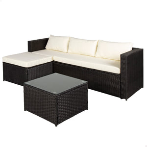 Aktive Conjunto de Móveis de Terraço e Jardim Vime com Sofá Chaise Longue Modular e Mesa