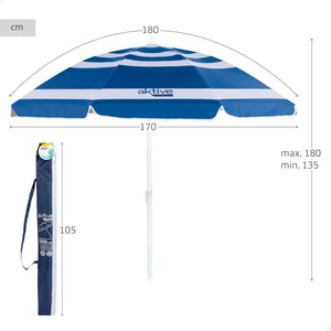 Guarda-chuva de praia tipo marinheiro de 180 cm com inclinação de Ø28/32 mm e mastro regulável em altura Aktive Beach