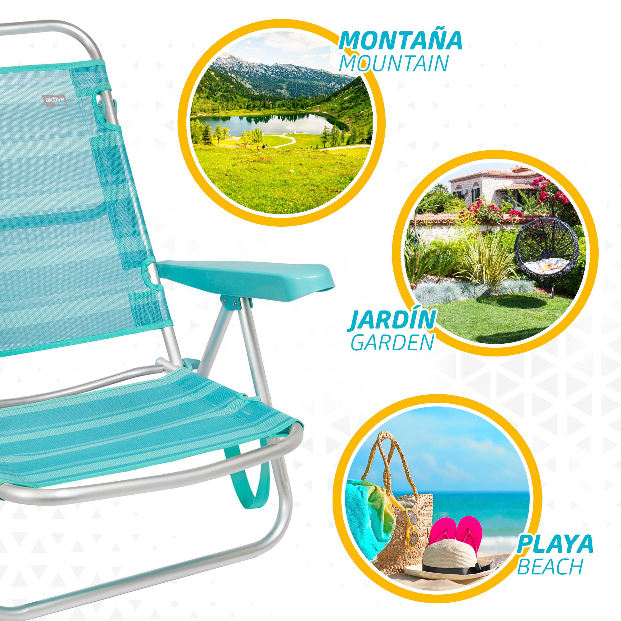 Saving pack 2 cadeiras de praia baixas modelo mediterrâneo cor turquesa Aktive Beach