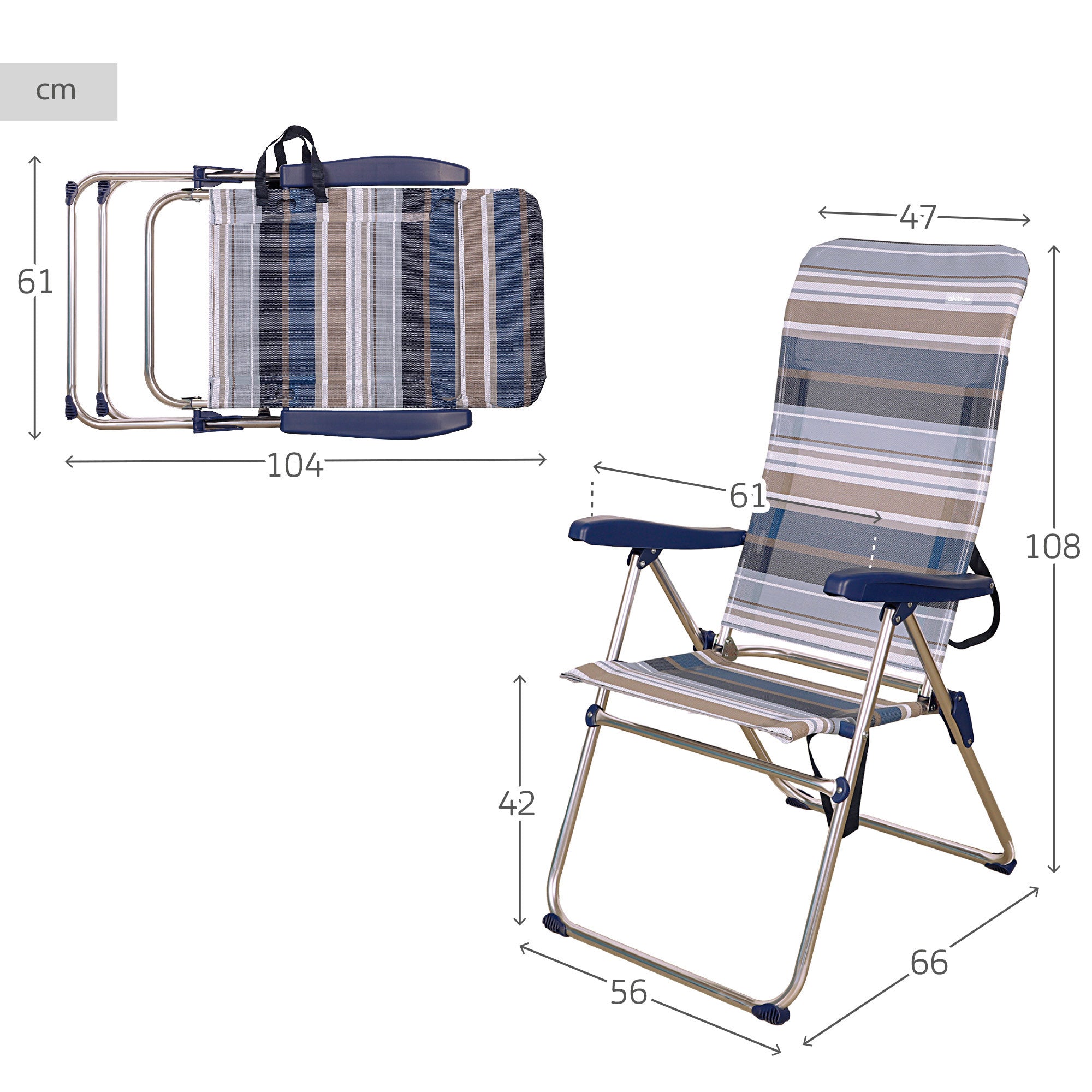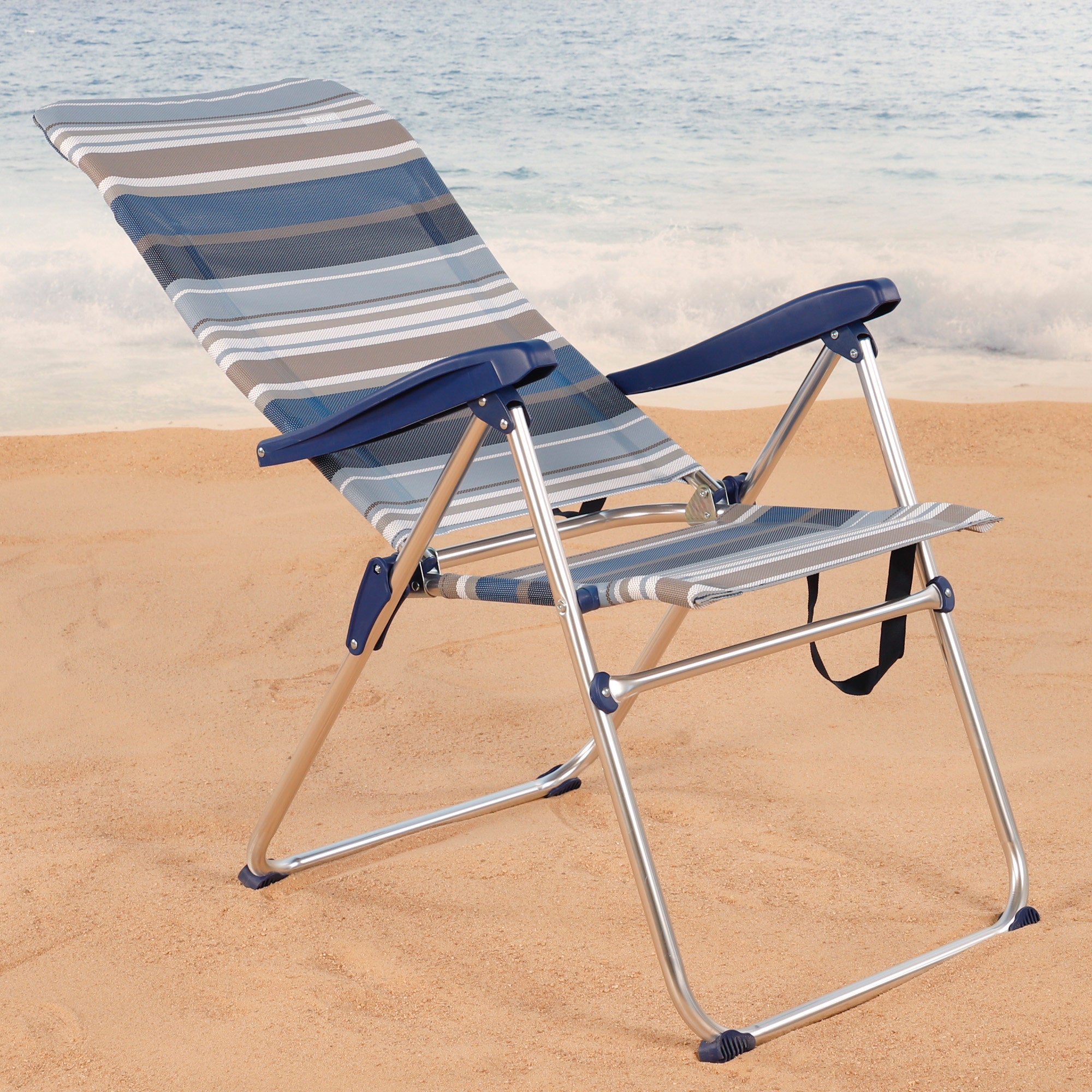 Sente-se ou deite-se confortavelmente quando for para a praia com esta cadeira dobrável alta e reclinável Aktive Beach em design listrado azul e cinza
