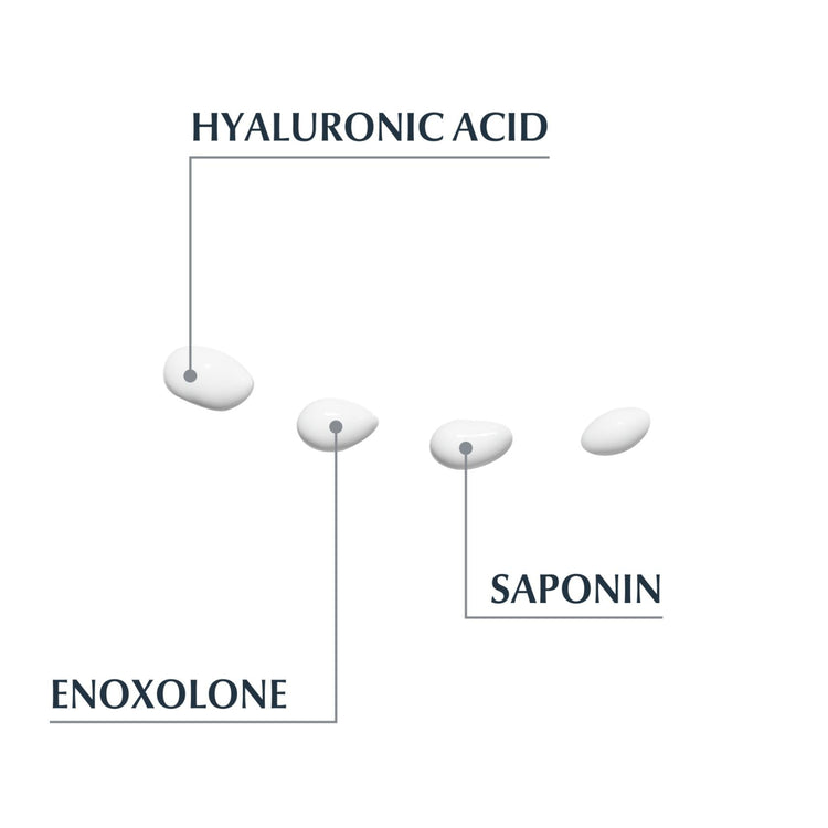 - Enoxolona ajuda a diminuir a taxa de degradação do próprio ácido hialurônico da pele.