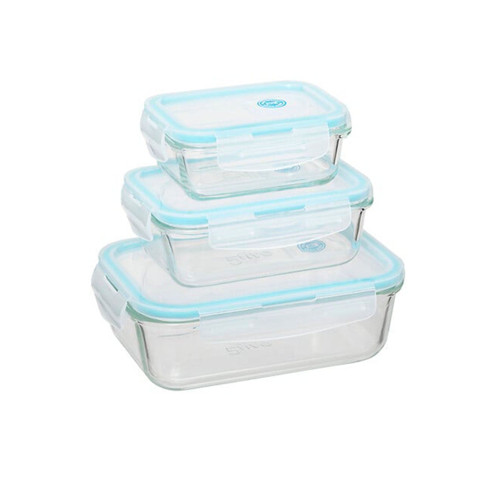 HKH Conjunto 3 Caixas Rectangulares Vidro com Tampa Hermética