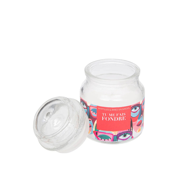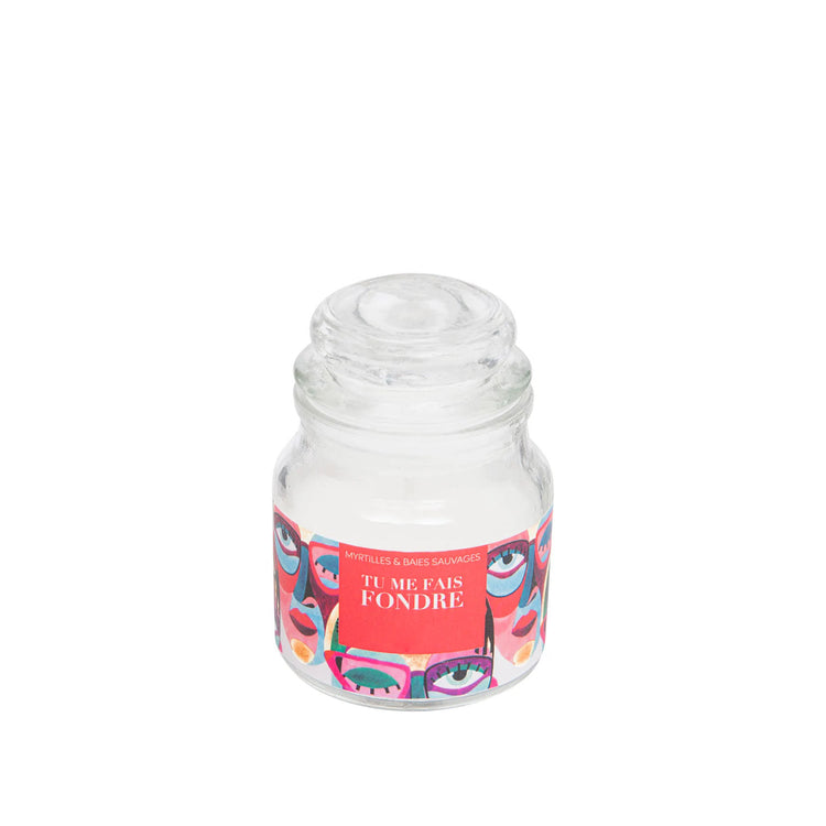 Taza y tapa de cristal con vela perfumada de arándanos HKH
