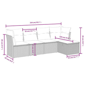 HKH 5 Pcs Conjunto Sofás P/ Jardim C/ Almofadões Vime Pe Castanho - Marrom