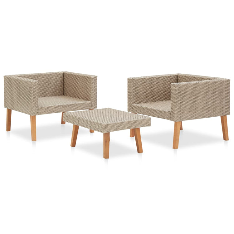 HKH 3 Pcs Conjunto Lounge de Jardim C/ Almofadões Vime Pe - Bege