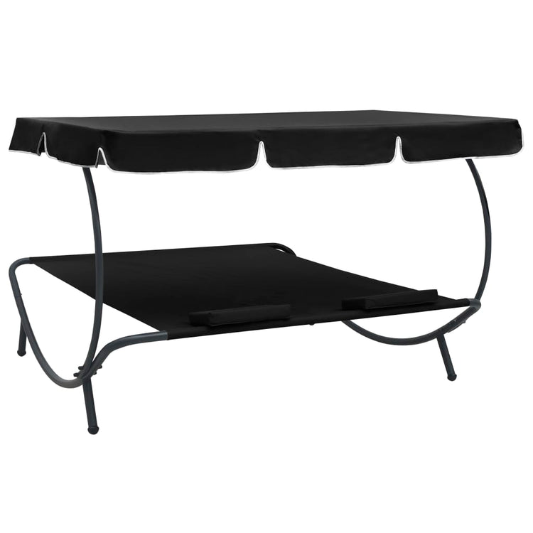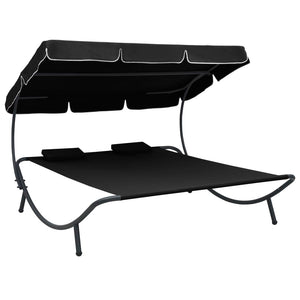 HKH Espreguiçadeira Com Toldo E Almofadas - Preto