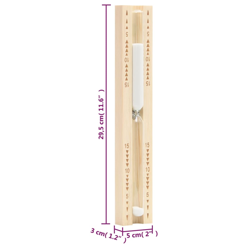 - Dimensões do temporizador de areia: 5 x 3 x 29,5 cm (C x L x A)