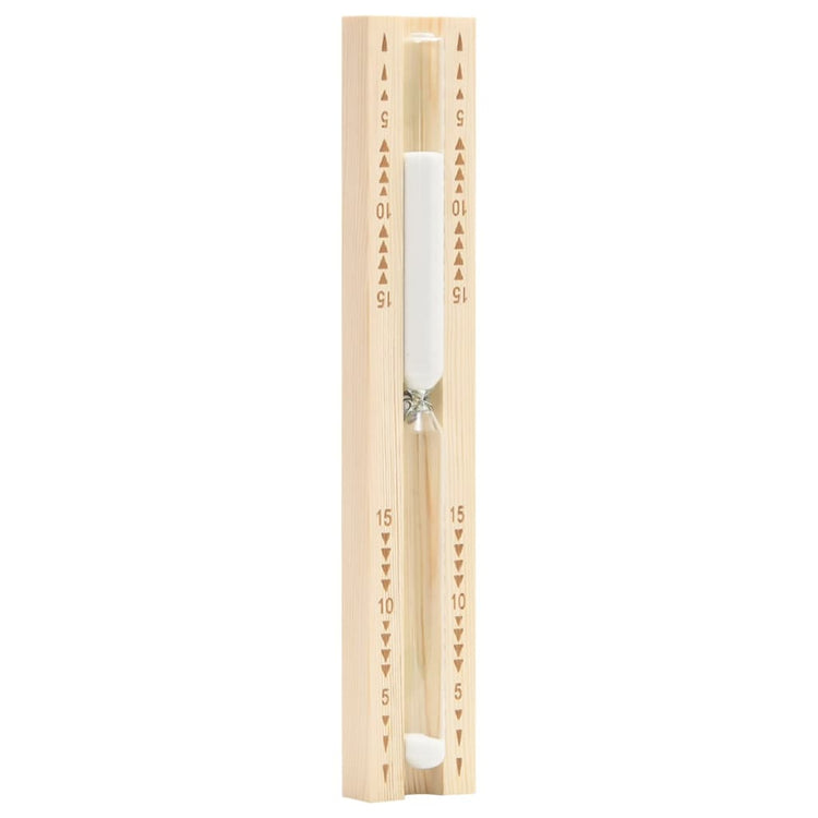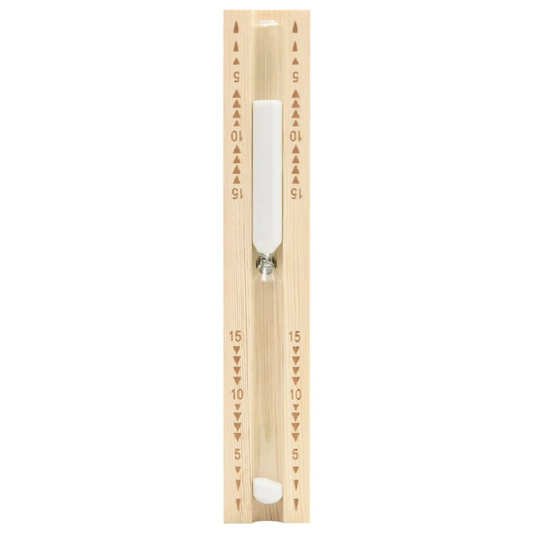 - Temporizador de areia de 15 minutos: 15 minutos é um período de tempo popular para desfrutar de uma sessão de sauna. O temporizador rotativo também inclui marcadores aproximados de 5 e 10 minutos para sessões mais curtas.