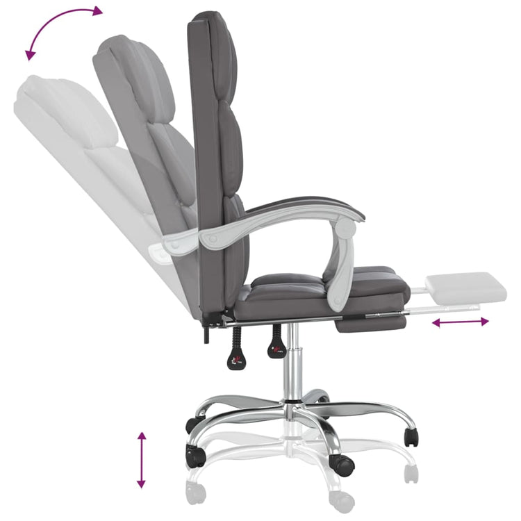 HKH Cadeira de Escritório Reclinável em Couro Artificial - Cinzento