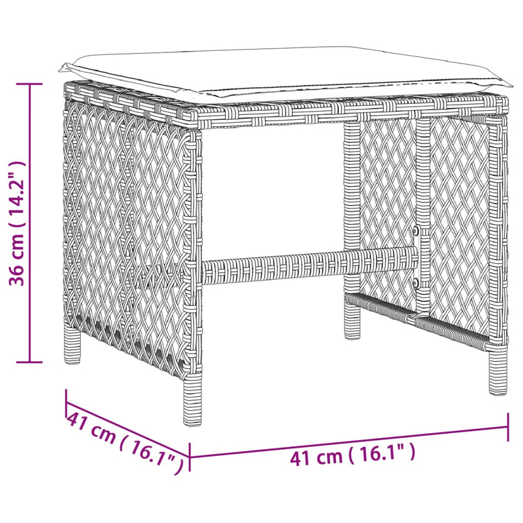 HKH Bancos Jardim C/ Almofadões 4pcs 41x41x36cm Vime Pe Cinza-claro - Cinzento