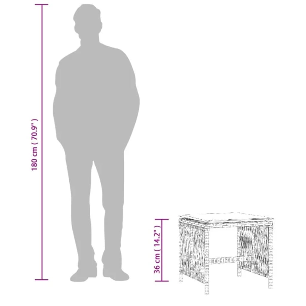 - Material durável: o vime PE, também conhecido como vime de poliéster, é um material sintético resistente e de baixa manutenção que se assemelha ao vime natural. É leve, fácil de limpar e geralmente utilizado em móveis de exterior devido à sua durabilidade e propriedades de resistência à s intempéries.