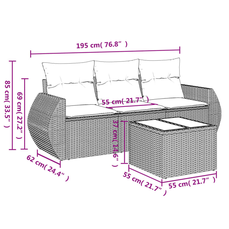 HKH 4 Pcs Conjunto Sofás de Jardim C/ Almofadões Vime Pe - Cinzento