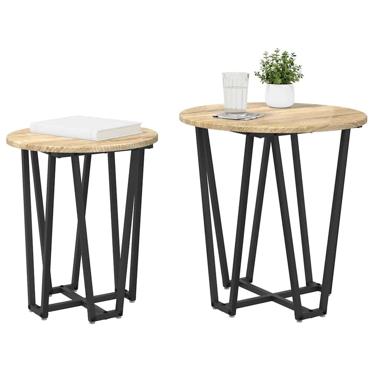 HKH Conjunto de 2 Mesas de Apoio Sonoma e em Carvalho - Preto