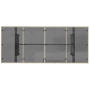 - Material: vime PE, aço revestido a pó, vidro temperado