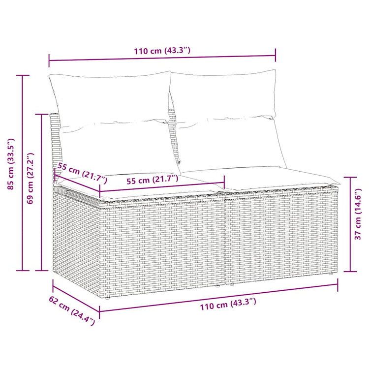 HKH 2 Pcs Conjunto Sofás Jardim C/ Almofadões Vime Pe/acácia - Preto