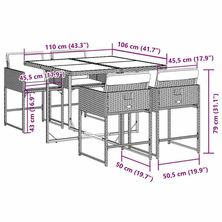 - Material: vime PE, aço revestido a pó, vidro temperado