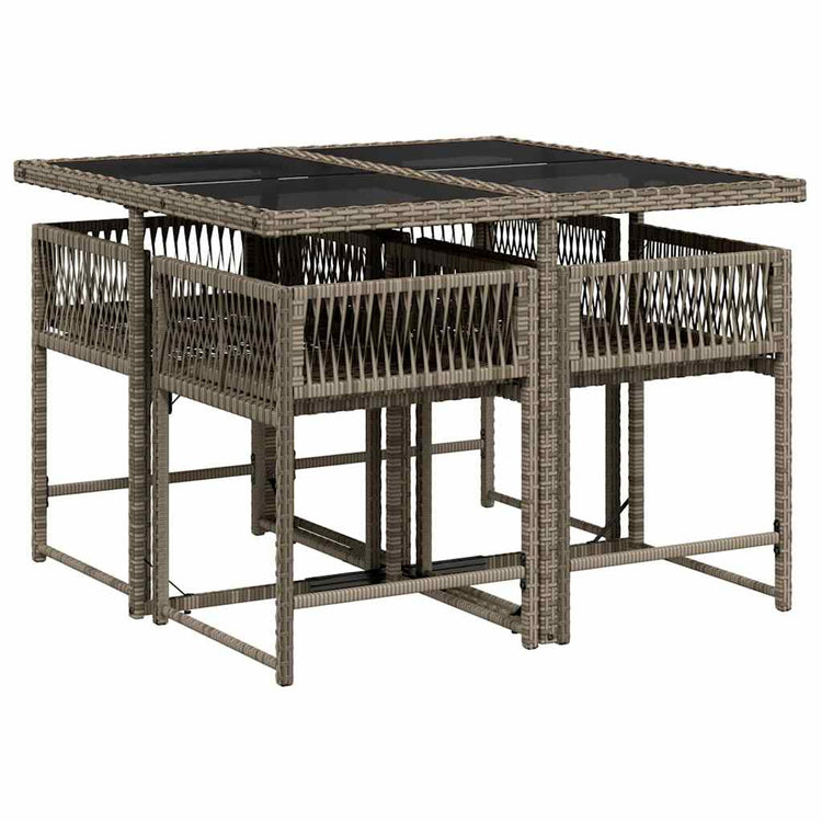 HKH 5 Pcs Conjunto de Jantar P/ Jardim C/ Almofadões Vime Pe Cinza - Cinzeto