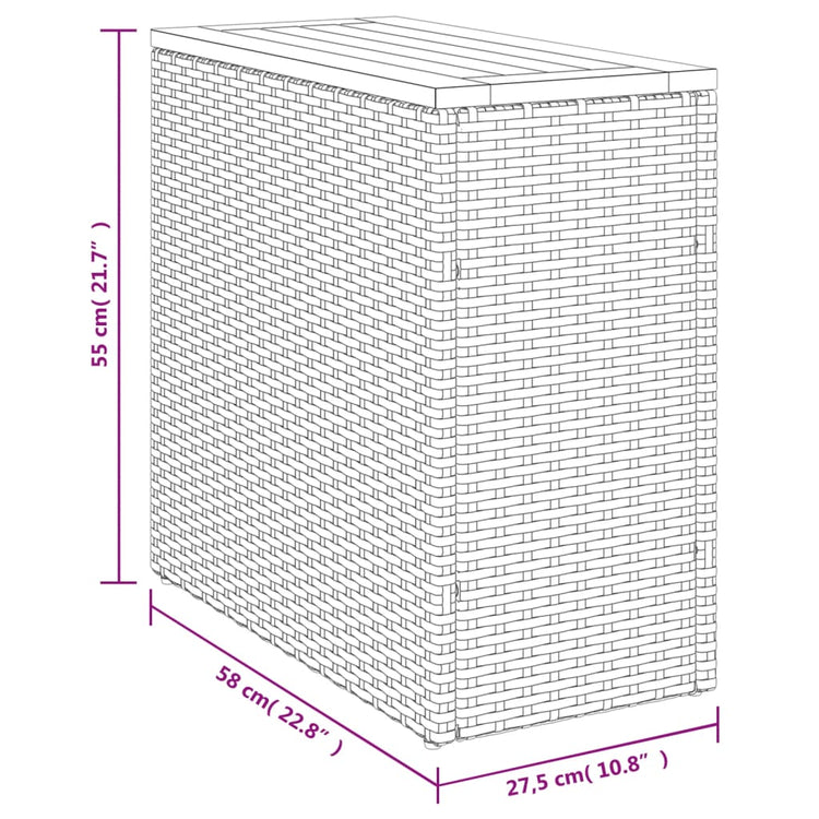 HKH Mesa Apoio Jardim C/ Tampo Madeira 58x27,5x55 Cm Vime Pe Cinza - Cinzento