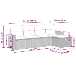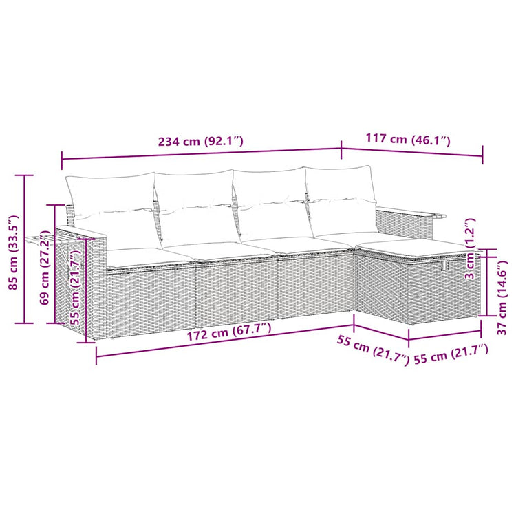 HKH 5 Pcs Conjunto Sofás de Jardim com Almofadões Vime Pe - Preto