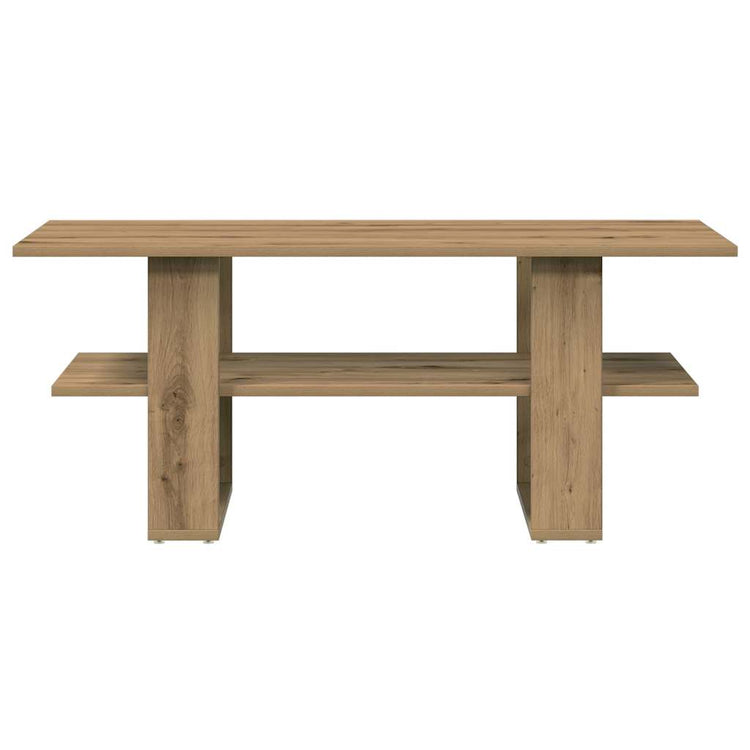 Relaxe e desfrute do tempo com a sua família e amigos à volta desta mesa de centro! Material estável e durável: os derivados de madeira são um material durável e estável com uma superfície lisa que é resistente à humidade, deformação e rachadelas, tornando-se uma escolha fiável para uma variedade de projetos. Amplo espaço de arrumação: a mesa de apoio com uma prateleira oferece um amplo espaço de arrumação para manter as suas revistas, livros, artigos decorativos e outros artigos essenciais do dia-a-dia bem organizados e ao seu alcance. Tampo robusto: a mesa de apoio ao sofá possui um tampo robusto, no qual pode colocar comida e bebidas ou expor objetos decorativos, tais como molduras ou vasos com plantas. Fácil de cuidar: graças à sua superfície suave, a mesa é fácil de limpar com um pano húmido e requer menos manutenção.nan