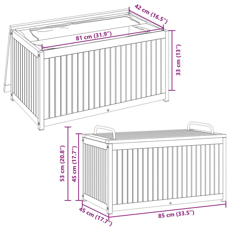 HKH Caixa P/ Almofadões De Exterior 85x45x45/53cm Acácia Maciça/aço - Marrom