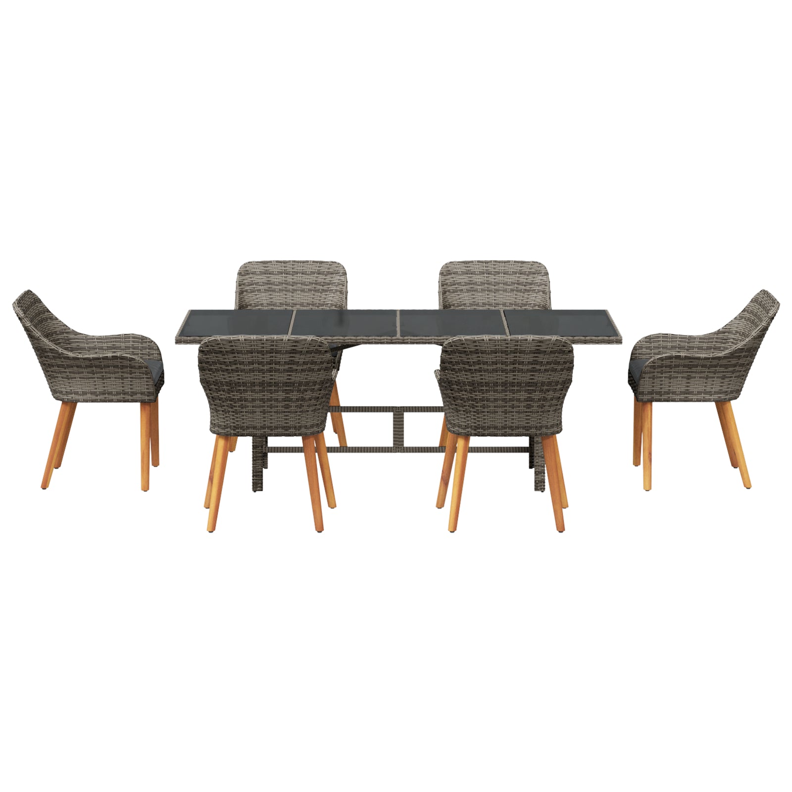 HKH Conjunto de Jantar 7 Peças Cinza Rattan Poly - Cinzento