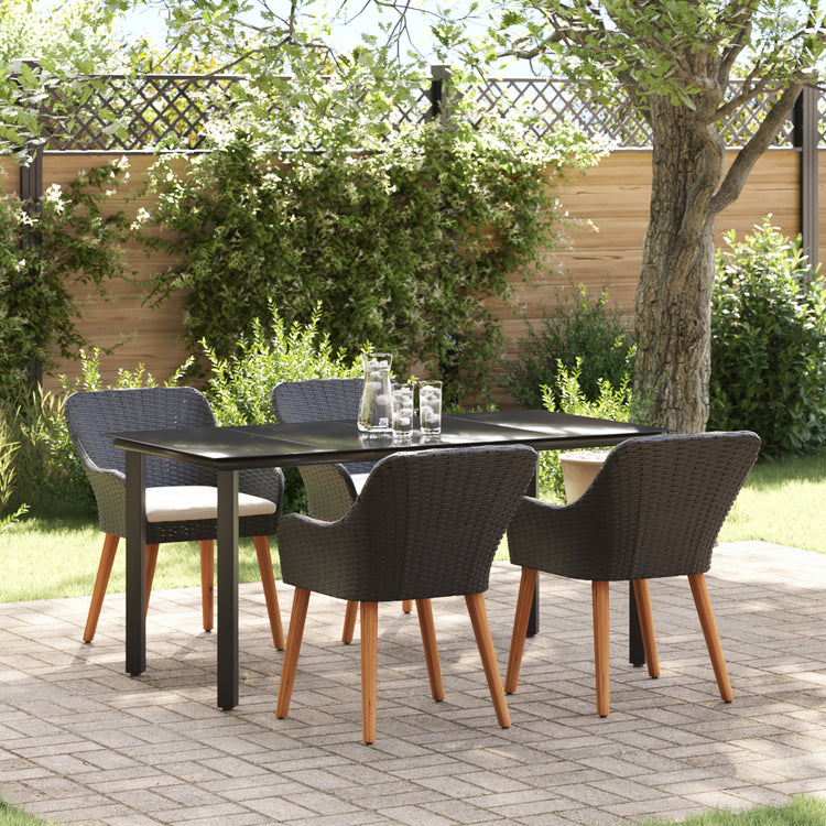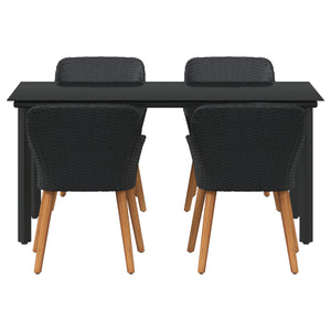HKH Conjunto de Jantar de 5 Peças Rattan Sintético - Preto