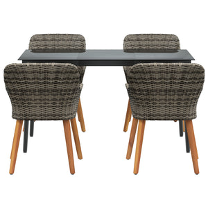 HKH Conjunto de Jantar para Jardim de 5 Peças em Rattan - Cinzento