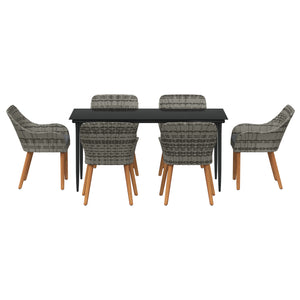 HKH Conjunto de Jantar de Jardim com 7 Peças em Rattan Cinza - Cinzento