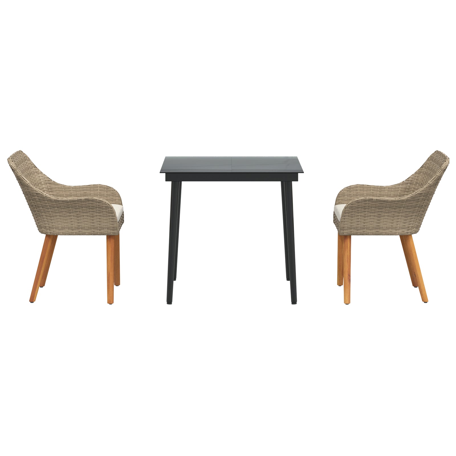 HKH Conjunto de Jantar de 3 Peças em Rattan Poliéster - Bege