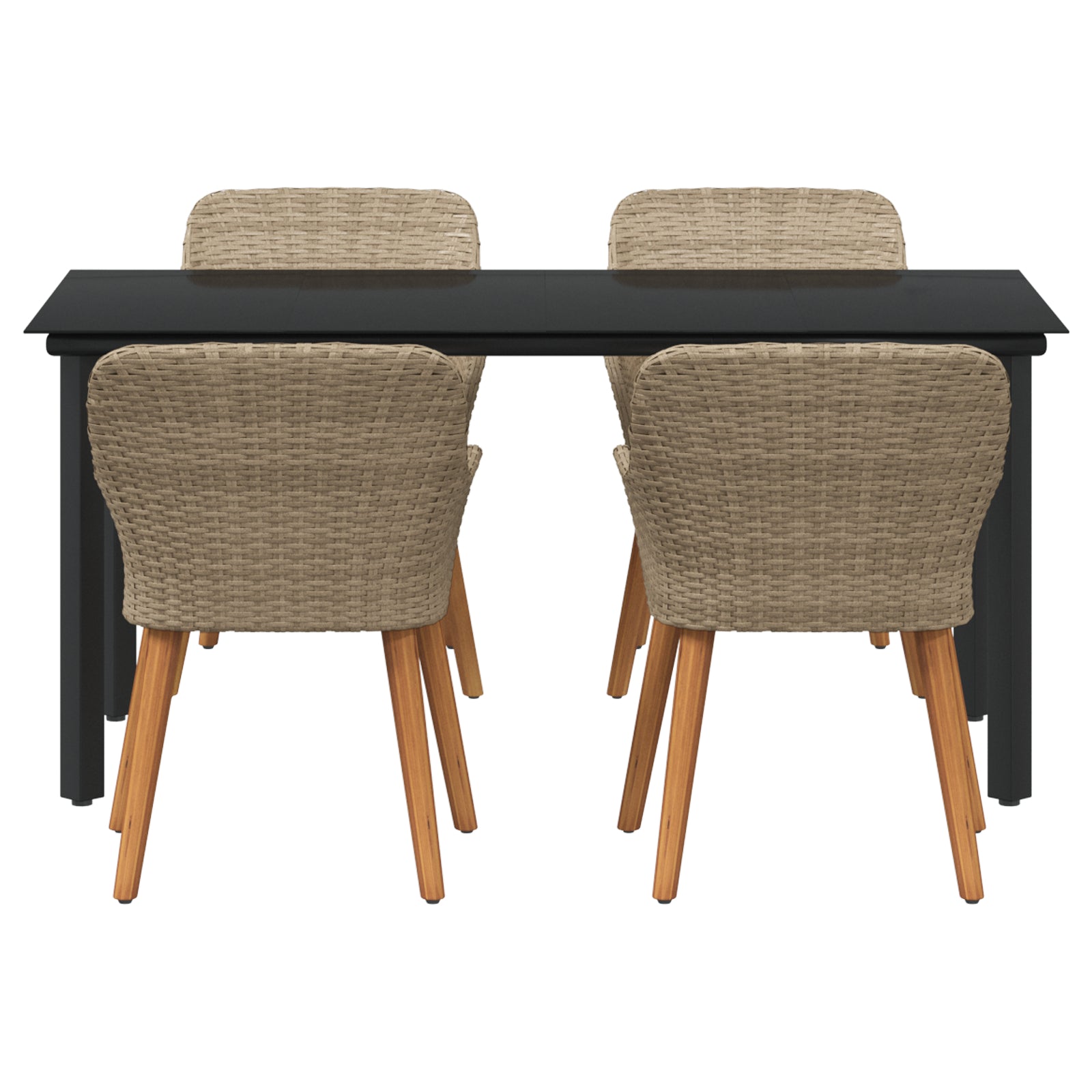 HKH Conjunto de Jantar para Jardim de 5 Peças em Rattan Poly - Bege