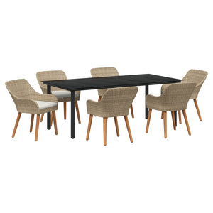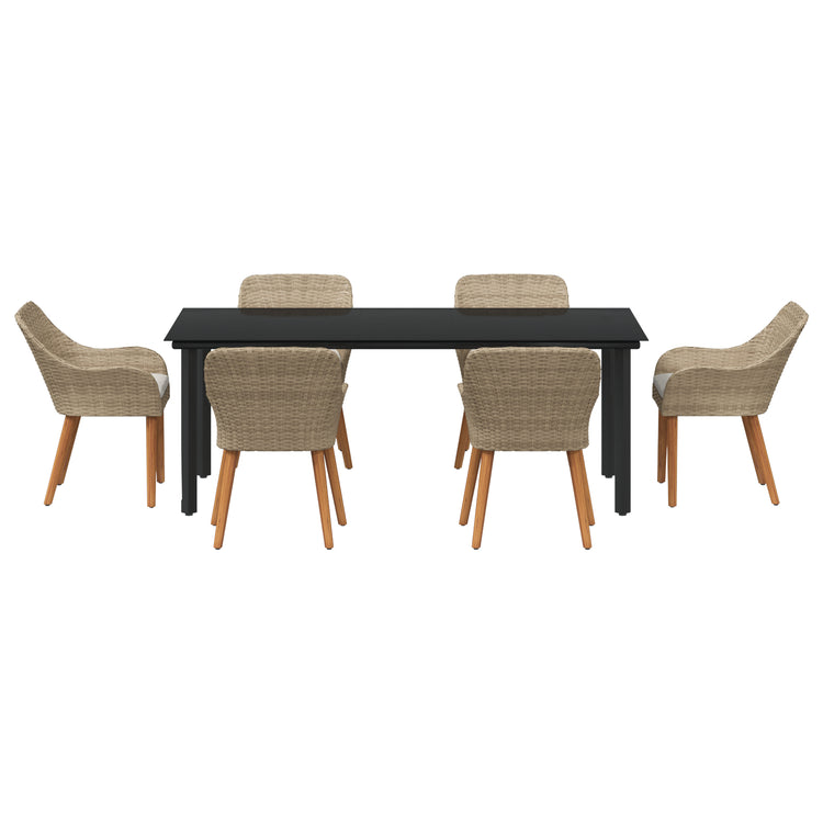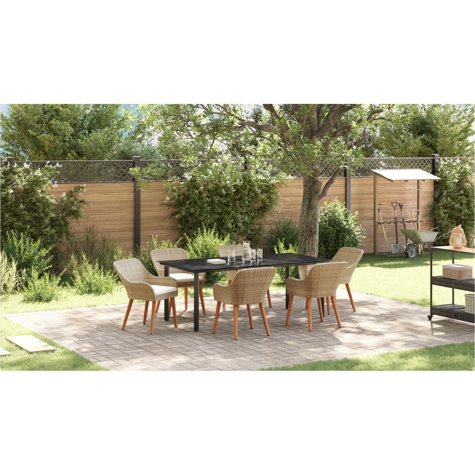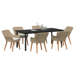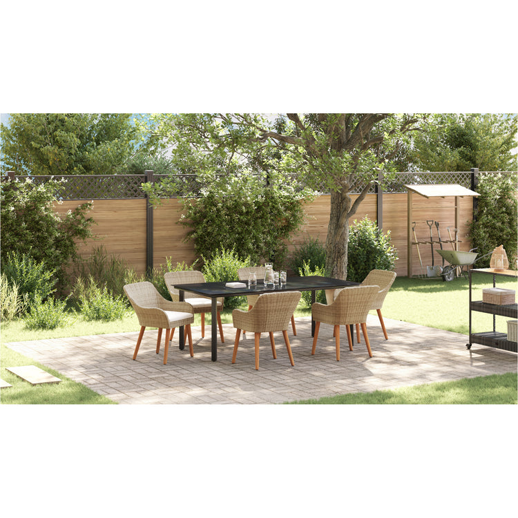 HKH Conjunto de Jantar de Jardim de 7 Peças em Rattan - Bege