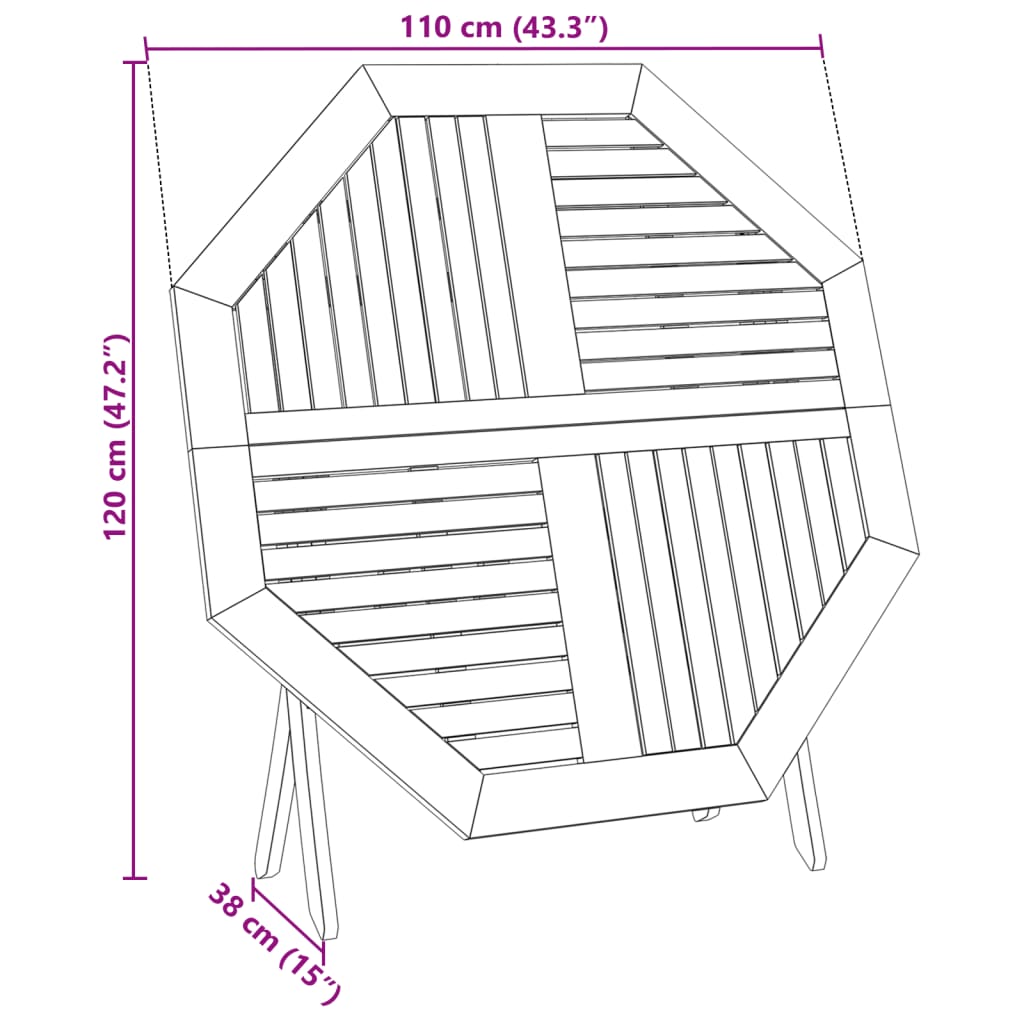 HKH Mesa de Jardim Dobrável em Madeira de Acácia Maciça
