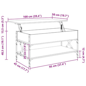 Dê um toque de elegância à sua sala de estar com esta moderna mesa de centro. Material durável: os derivados de madeira possuem uma qualidade excecional e oferecem uma superfície suave bem como força, estabilidade e resistência à humidade.Design elevatório: o tampo desta mesa de apoio ao sofá pode ser levantado suavemente até uma altura confortável, convertendo a mesa num espaço onde pode trabalhar ou jantar.Amplo espaço de arrumação: a mesa para sala de estar possui um amplo espaço de arrumação por baixo do tampo que serve como compartimento oculto, no qual pode guardar os seus artigos frequentemente utilizados, protegendo-os do pó.Pés ajustáveis: a mesa de centro está equipada com 4 pés ajustáveis que podem proteger o seu chão de riscos e mantê-la estável em pisos irregulares.Estrutura robusta: a estrutura de metal desta mesa de apoio ao sofá assegura resistência e estabilidade.nan