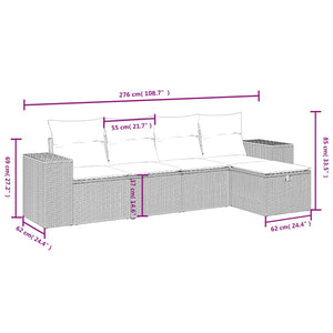 HKH 5 Pcs Conjunto Sofás de Jardim com Almofadões Vime Pe - Preto