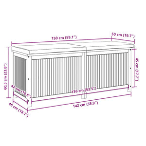 - Dimensões da caixa interior: 136 x 42 x 45 cm (L x P x A)